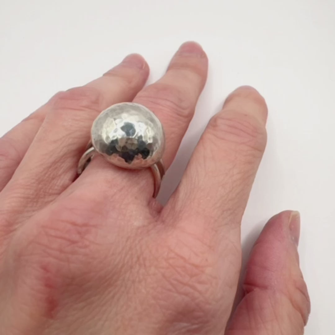 This is a statement ring! Beautiful, full of personality, super modern and puts together any look. Textured top with double bands to balance the design.