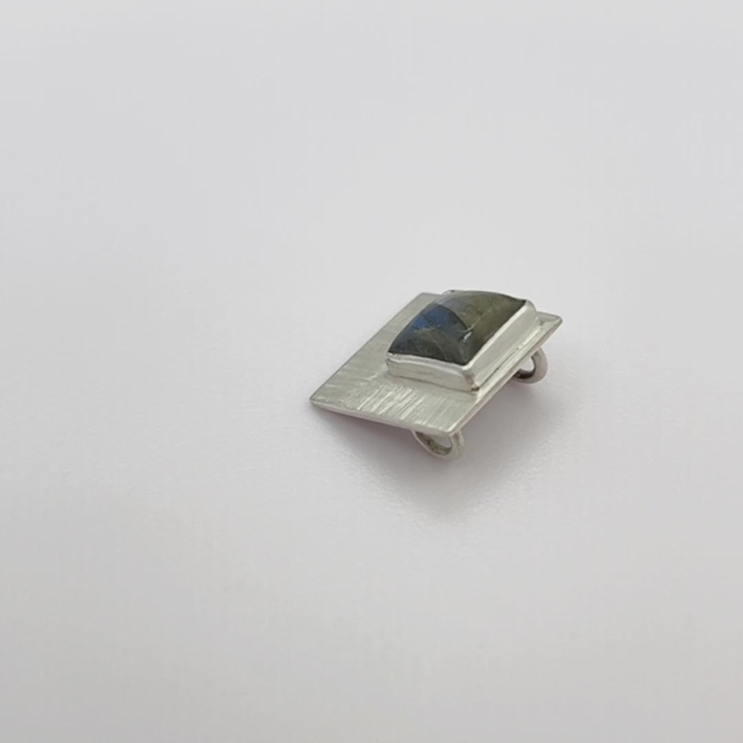 This minimalist and modern pendant features a striking square labradorite gemstone, showcasing captivating blue and yellow hues. The unique textured finish adds a contemporary touch, making it a standout piece. This one-of-a-kind jewelry effortlessly complements your everyday style.