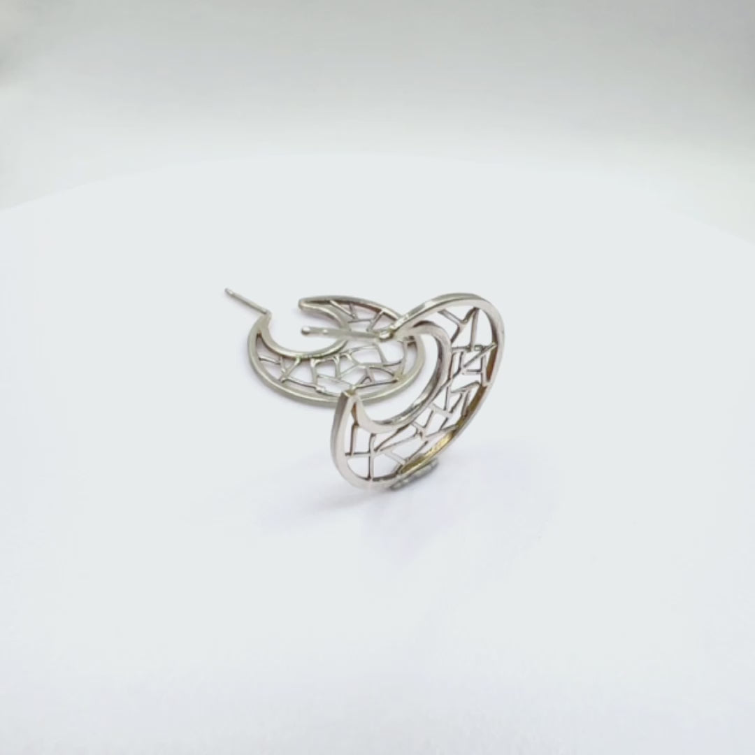 The Net Moon Hoops Earrings have a captivating and unique geometric design that's part of the Net Collection, which is known for its one-of-a-kind designs made of tiny wire pieces soldered together. These earrings are versatile and perfect for any occasion, adding elegance to everyday wear or making a statement at formal events. The Net Collection is renowned for its creativity, with each piece being different from the others. The Net Moon Hoops Earrings are a true work of art that elevates your style to new heights.